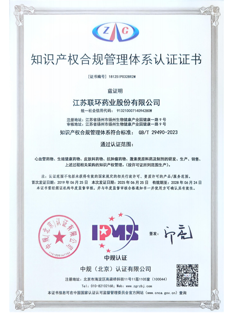 CopyRight ©2026 版权所有 江苏联环药业股份有限公司 电话:0514-82778972 地址:扬州生物健康产业园健康一路9号